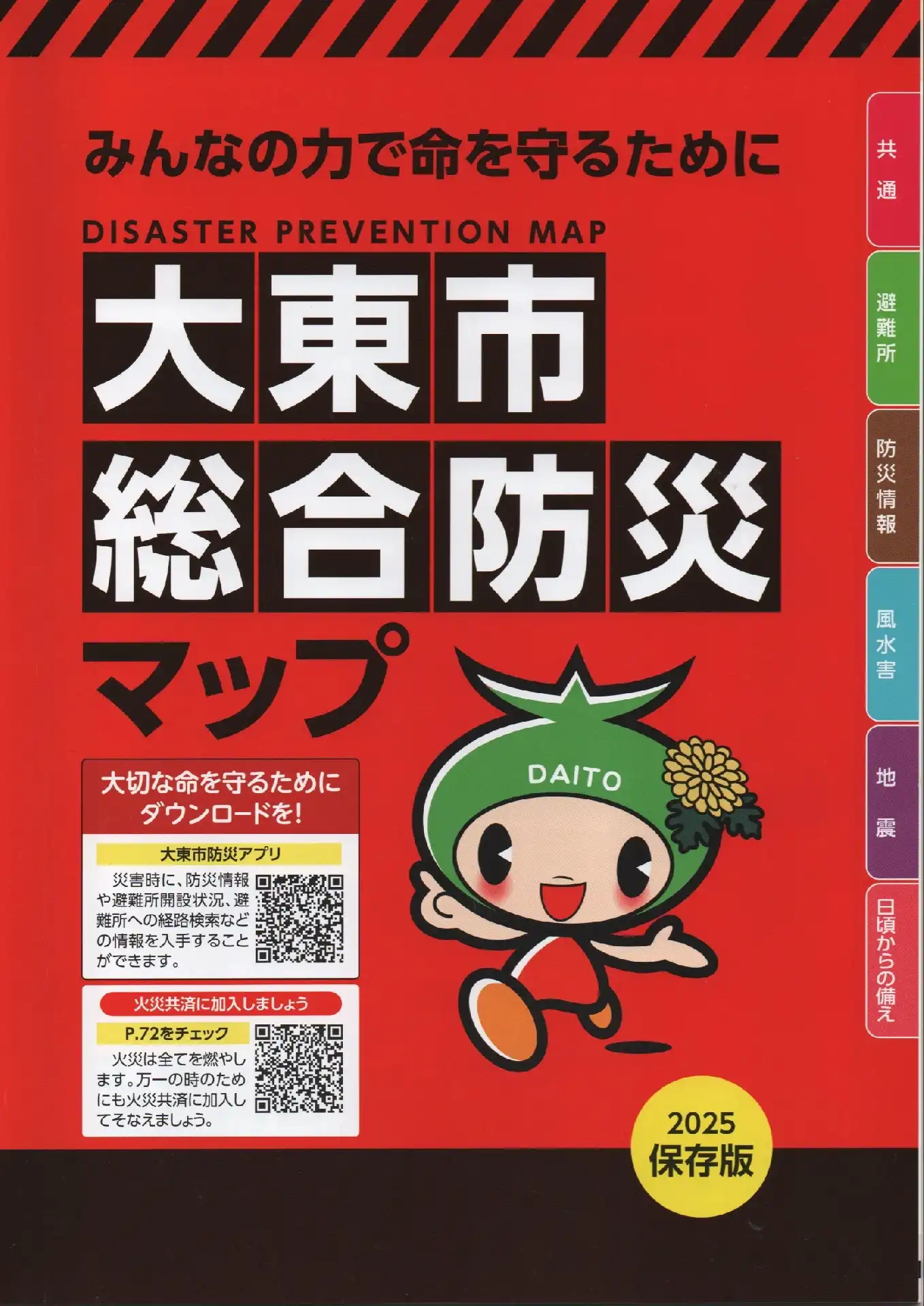 ②9月19日から大東市が全世帯に「大東市総合防災マップ」を配布し始めています。最新の防災にかかる情報が満載です。これは是非家族全員で見て欲しいとのことです。上の写真参照。