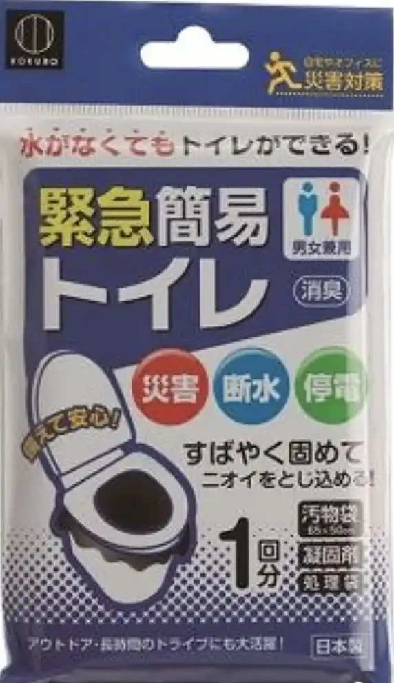 避難所に行かず、何とか自宅が住み続けられる状態でも、トイレ対策が出来ていなければ、たちまち不衛生で住めない家になってしまいます。ダイソーで売っている緊急簡易トイレはぜひ買いに行きます。下の写真参照。