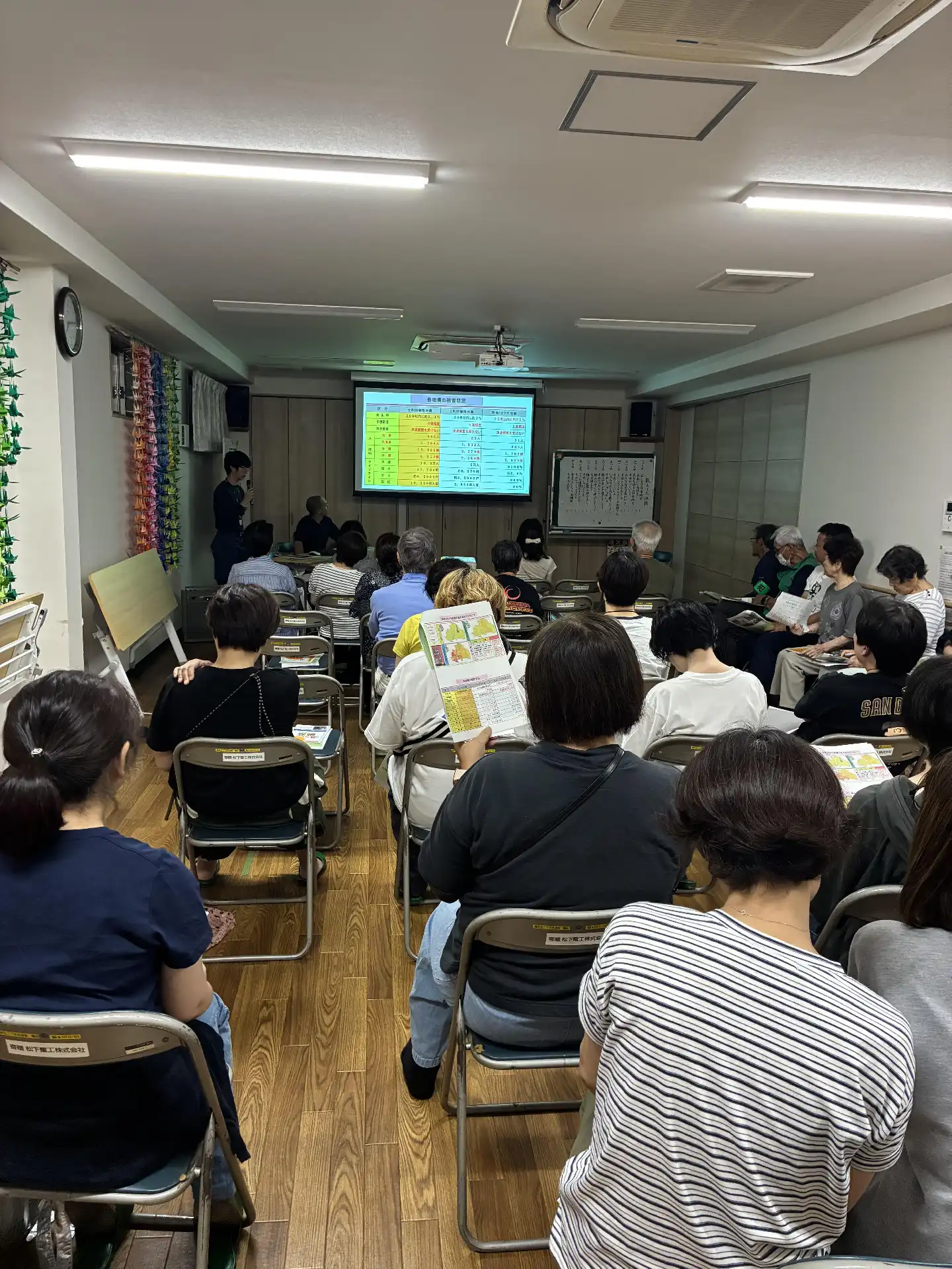 9月20日、恒例の自主防災訓練、大東市危機管理室に来てもらい防災講演会を開催しました。参加者は班長さん、各種団体役員、役員50名ほどで地域住民が知っておくべき最新の情報を知ることができました。(下の写真参照)